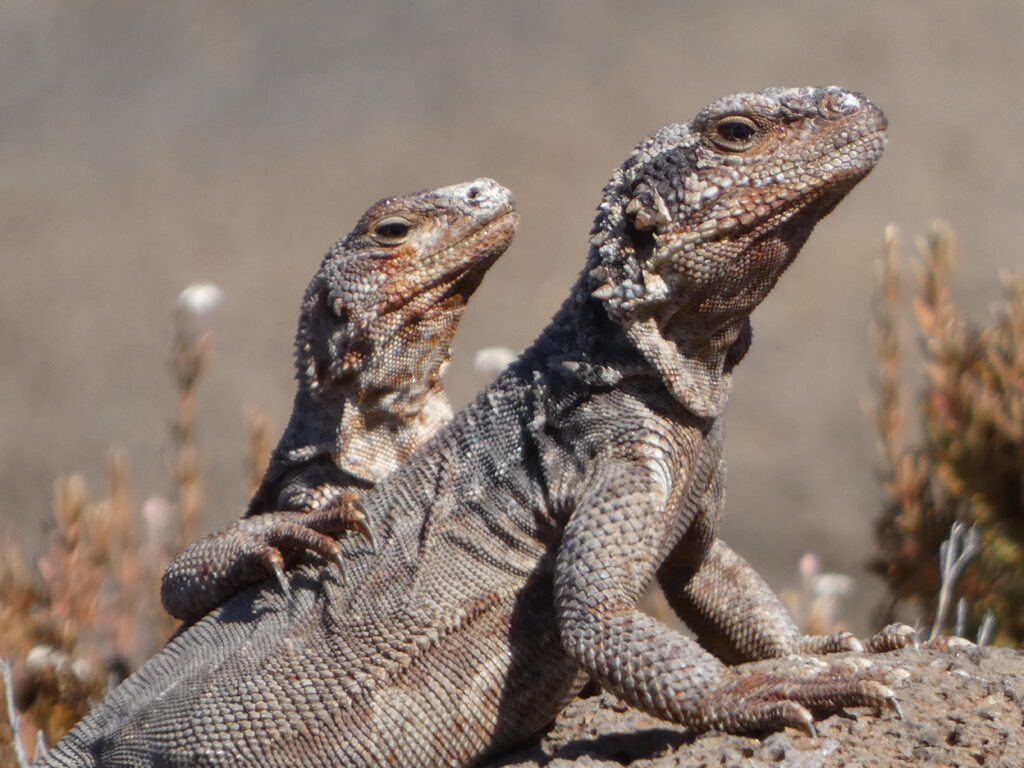 - Desert iguanas and chuckwallas sunning on rocks